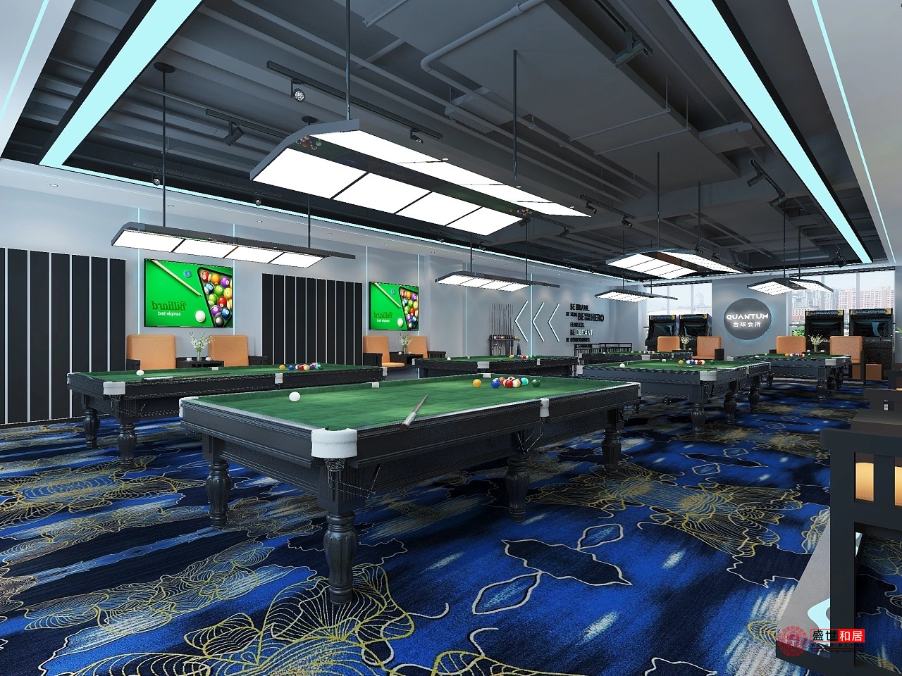 更多臺(tái)球室設(shè)計(jì)裝修案例來(lái)自:www.d3835.cn